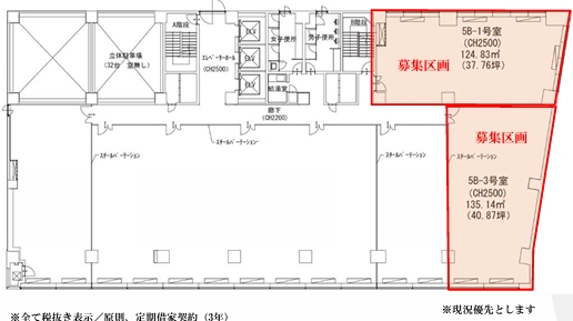 | 備考 | 備考:24時間使用可 管理人巡回+機械警備、床:OAフロア50㎜、空調:個別+セントラル空調、設備:ELV3基 | ||||