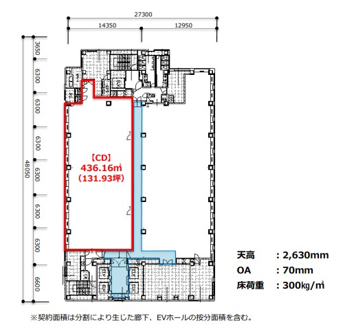 事務所 ※契約面積に廊下・EVホールの按分面積を含む(13.92坪) 7月1日入居可能