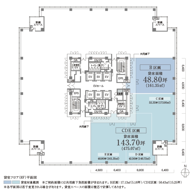 | 備考 | 備考:天井高:2,600㎜、床:OAフロア80㎜、空調:セントラル空調、設備:CHEP | ||||
