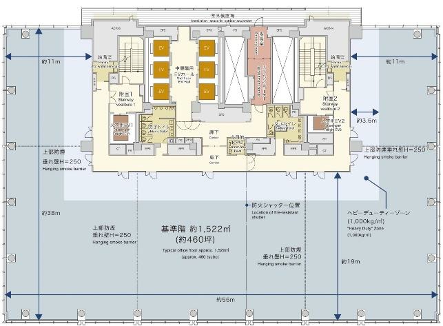 | 備考 | 備考:8 0VA/ ㎡ (内、 非常用発電機系統 15VA/ ㎡、床:OAフロア100㎜、空調:個別空調、設備:天井高:2900㎜ | ||||