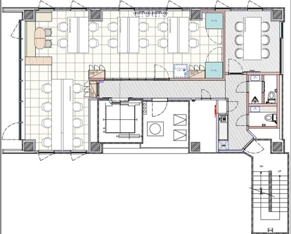 事務所 セットアップオフィス(受付、ラウンジスペース、テレカンブース2室、6名用会議室付)※執務室、会議室は什器設置