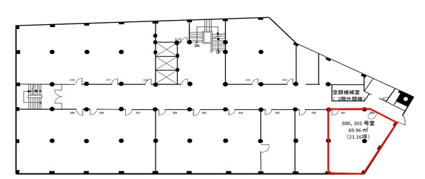 | 備考 | 備考:光ケーブル、24時間使用可能、床:OAフロア40㎜、空調:個別空調、設備:CHE | ||||