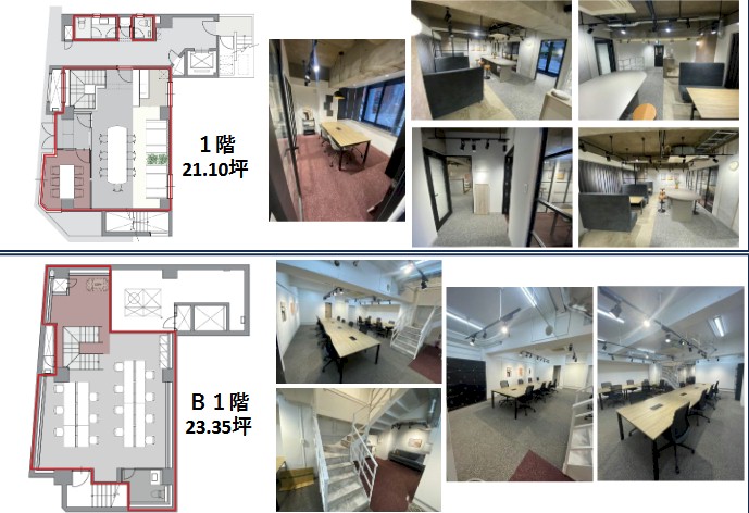事務所 フルセットアップ B1Fと1Fのセット貸し