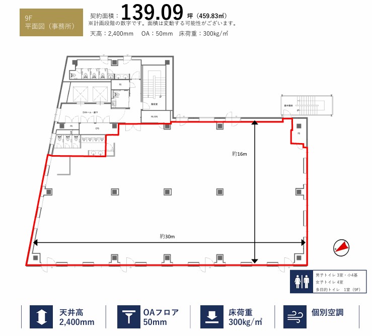 | 構造 | 鉄骨 | 専有面積 | 459.80㎡ | ||